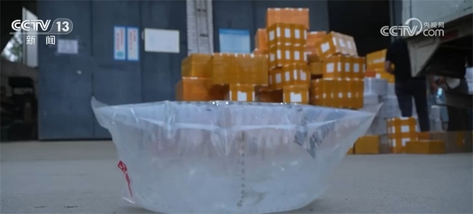 四個月后,向寨村破解了錦鯉“活體運輸”的瓶頸:把錦鯉裝進特殊材料制成的密封袋子內(nèi),充進氧氣后再進行熱合封口,新的包裝方式將破損率降低到百分之五以內(nèi),即便成年人站在上面,袋子也不會破損。