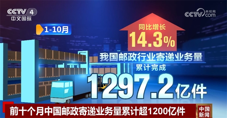 ?????? 前十個月中國郵政寄遞業(yè)務量累計超1200億件