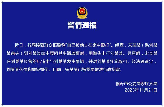 ·山東臨沂一女子被前夫毆打,警方通報(bào):男子已被行拘。