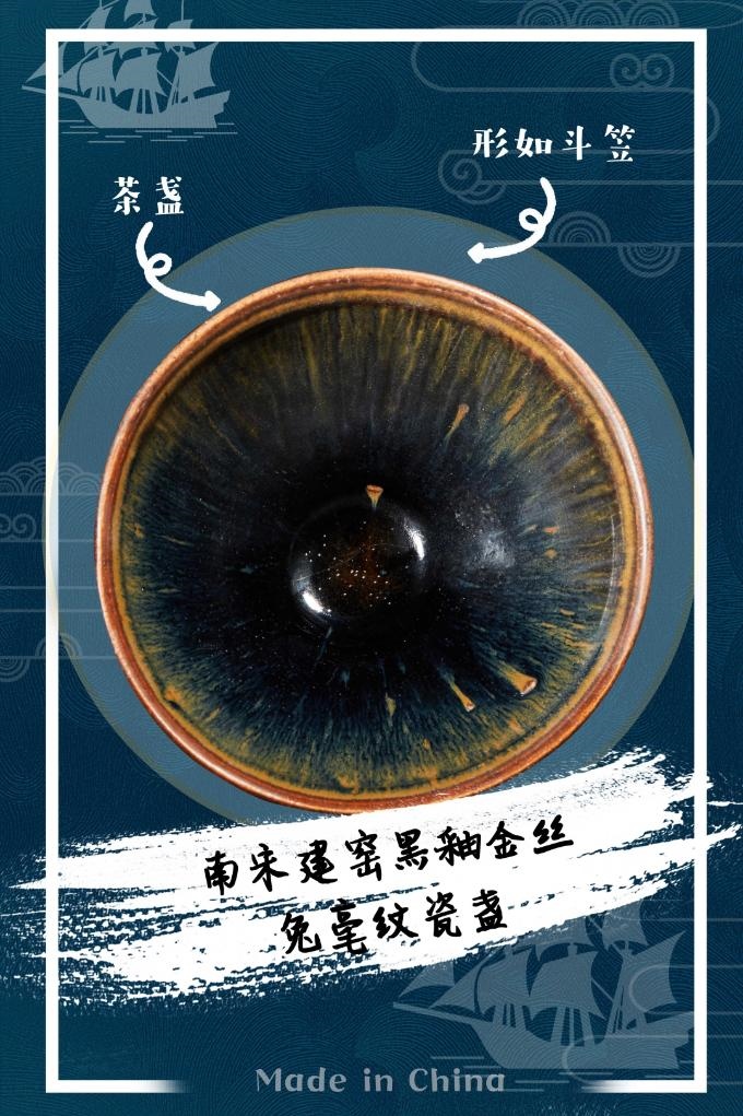 南宋建窯黑釉金絲兔毫紋瓷盞