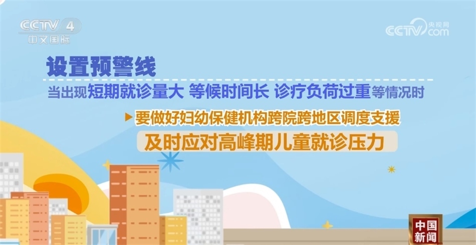 設置預警線,當出現(xiàn)短期就診量大、等候時間長、診療負荷過重等情況時,要做好婦幼保健機構(gòu)跨院跨地區(qū)調(diào)度支援,及時應對高峰期兒童就診壓力。