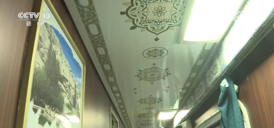 “阿克蘇號”作為助推新疆經(jīng)濟和旅游業(yè)發(fā)展的特色品牌列車,車上的軟硬件設(shè)施都獨具特色。每節(jié)車廂都裝飾有獨具新疆地域特色的人文景觀、民俗風(fēng)情的圖文介紹,讓旅客能感受到濃郁的新疆特色。