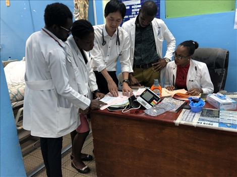 吳德熙在中多友誼醫(yī)院為查爾斯大使檢查
