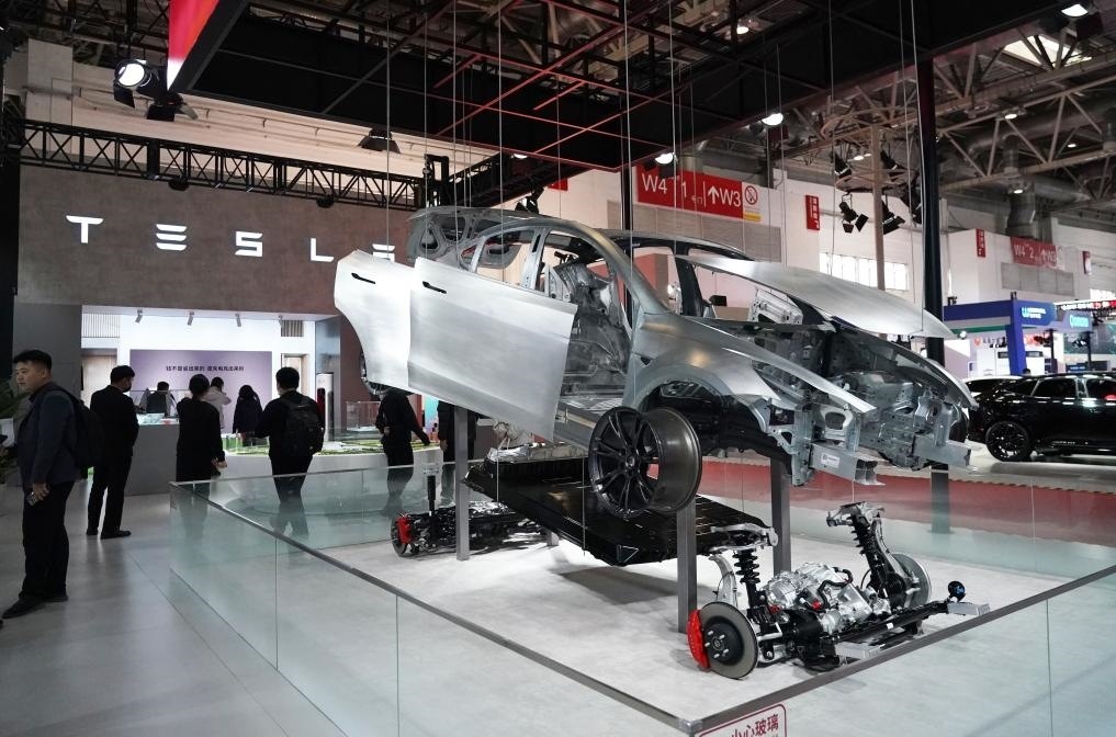 11月30日在鏈博會智能汽車鏈展區(qū)拍攝的特斯拉展位。新華社記者 任超 攝