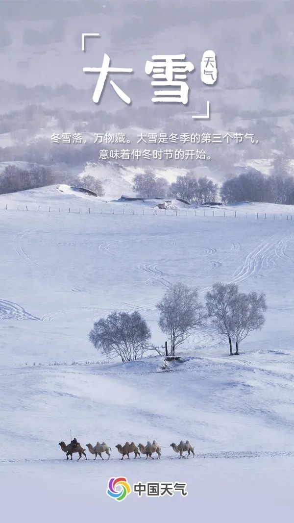 大雪節(jié)氣期間,由于氣溫進一步下降,降雪或積雪的概率都有所增加。小雪節(jié)氣,雪隨下隨融,而到了大雪節(jié)氣,雪隨下隨積,能“坐住了”。此時,新疆北部、西北地區(qū)東部、東北等地要警惕強風雪天氣的出現(xiàn)。