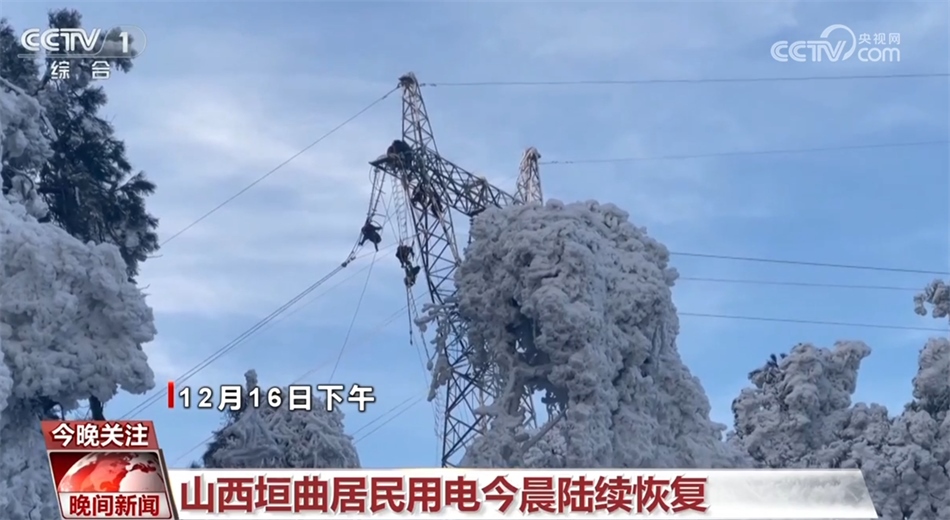寒冬里,有人選擇向寒風(fēng)逆行,用自己的堅(jiān)守給千家萬戶送去溫暖。13日傍晚,受降雪降溫天氣影響,山西省運(yùn)城市垣曲縣的4條輸電線路發(fā)生故障,導(dǎo)致全縣停電。經(jīng)過70多個(gè)小時(shí)搶修,截至12月17日7點(diǎn),受雨雪冰凍災(zāi)害影響的山西12座變電站已全部恢復(fù)供電,垣曲當(dāng)?shù)鼐用裼秒娨仓鸩交謴?fù)。