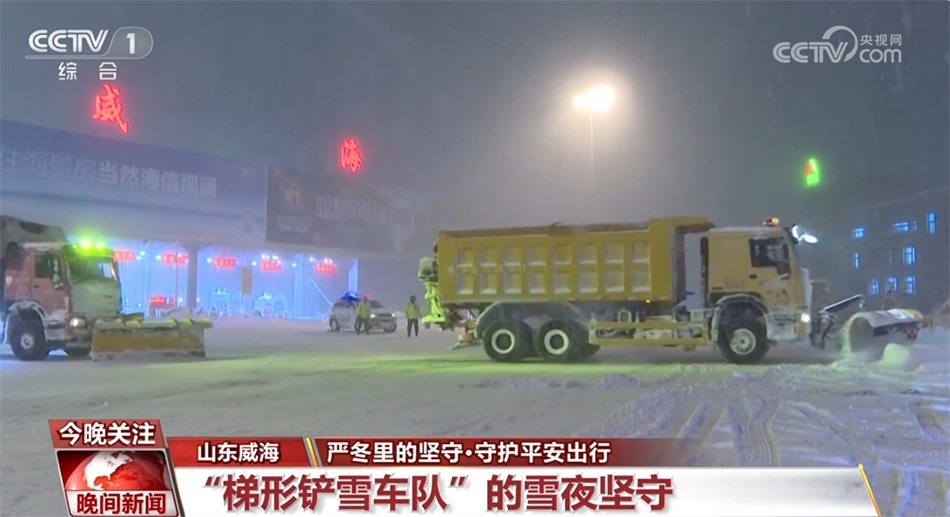從16日開始,山東威海迎來強(qiáng)降雪天氣,晚上七點(diǎn)多,威海收費(fèi)站負(fù)責(zé)高速公路養(yǎng)護(hù)的張輝,正帶著工友們用鏟車和裝載車緊張地進(jìn)行道路積雪的清除工作。張輝告訴記者,所有養(yǎng)護(hù)人員凌晨三點(diǎn)就起床開始清雪。梯形車隊(duì)出發(fā)后,張輝又組織人員對拋錨的車輛進(jìn)行救援,為滯留的貨車司機(jī)發(fā)放食品。