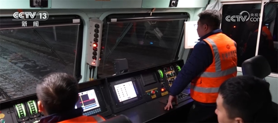 總臺央視記者 張叢婧:我現在是在一列滿載著將近一萬噸煤炭的貨運火車上,正在駛往黃驊港方向。這列車從神東礦區(qū)裝滿煤之后,一路往東,現在到達了它途中的第一個編組站,在這里會進行更換車頭的工作,因為這往后的路會更加崎嶇難走,我們可以看到現在路上是有積雪,所以需要在這換一個更大功率的車頭,才能夠帶得動它身后這一百多節(jié)車廂去走這段更艱難的路?,F在隨著這個車緩緩進站,馬上就要去進行編組任務。