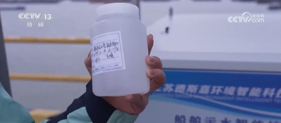 您看,這會(huì)在江面上不少大貨船旁都有一艘小船緊挨著它,這艘小船是污染物集中接收船,就相當(dāng)于長(zhǎng)江上的“垃圾回收站”,連接兩艘船的管道后,船上生活污水即可被回收到接收裝置中。您看,我手里這杯清澈的水就是集中處理后的污水,目前達(dá)到了一級(jí)A類(lèi)的標(biāo)準(zhǔn),也將會(huì)被重新直排回長(zhǎng)江。?