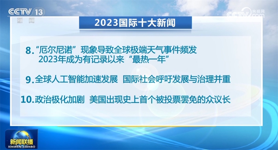 央視網(wǎng)消息(新聞聯(lián)播):中央廣播電視總臺(tái)今天(12月27日)發(fā)布2023國(guó)內(nèi)十大新聞和國(guó)際十大新聞。