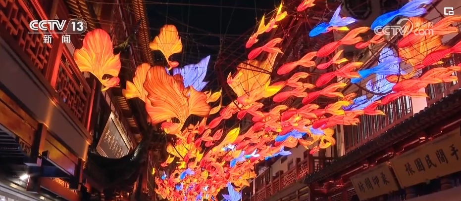 在上海,迎新春的傳統(tǒng)活動豫園燈會正在緊鑼密鼓籌備中。在豫園商城的凝暉路上,名為“一夜魚龍舞”的主題燈組已經(jīng)亮燈。抬眼望去,多彩的魚群匯成游龍回旋的姿態(tài),游走在飛檐斗拱之間,呈現(xiàn)出一片繁華景象。