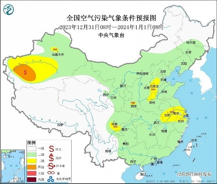 央視網(wǎng)消息:據(jù)中央氣象臺(tái)網(wǎng)站消息,12月29日早晨,中央氣象臺(tái)將大霧預(yù)警升級為最高等級的紅色,這也是今年首次發(fā)布大霧紅色預(yù)警。氣象監(jiān)測顯示,今晨,內(nèi)蒙古中部、寧夏北部、陜西、山西、河北中南部、天津、山東、河南、蘇皖中南部、浙江北部和西部、江西北部、湖北、湖南及四川盆地等地出現(xiàn)輕度到中度污染,部分地區(qū)重度污染;上述部分地區(qū)出現(xiàn)能見度不足1千米的大霧,其中河北、山東、安徽、江蘇、浙江及上海等局地能見度不足200米。今天早晨至上午時(shí)段,四川盆地至黃淮、江淮一帶的大霧天氣仍會(huì)持續(xù)。