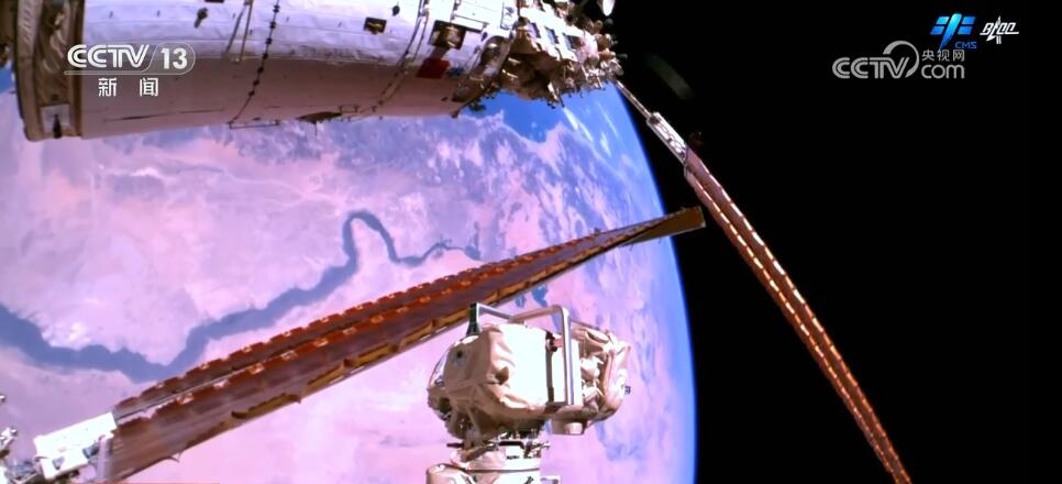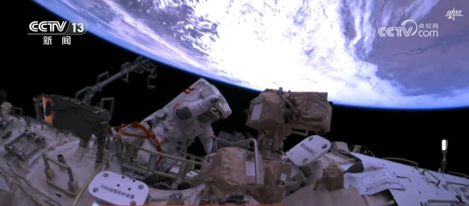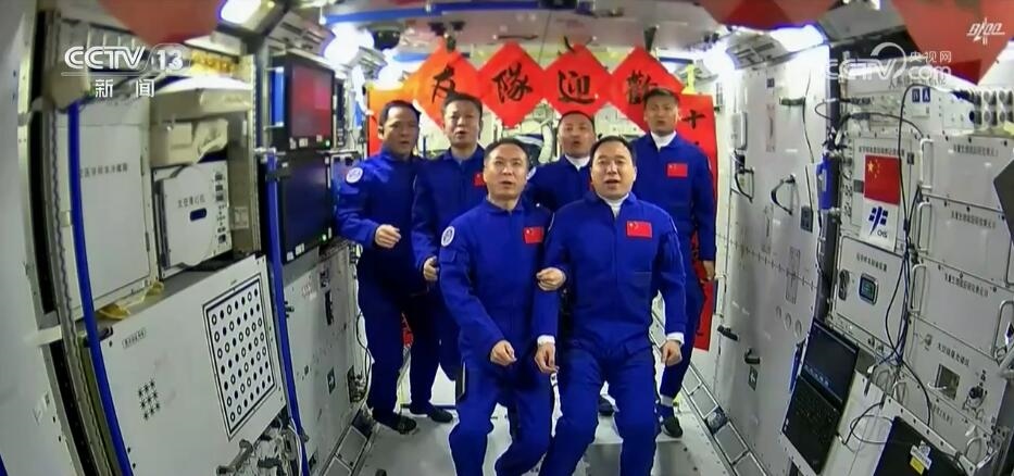 2023年10月26日19時(shí)34分,神舟十六號(hào)航天員乘組打開“家門”,歡迎神舟十七號(hào)航天員湯洪波、唐勝杰、江新林入駐“天宮”。兩個(gè)乘組在軌共同生活了約5天后,神舟十六號(hào)航天員在返回地球途中,還完成了此次飛行任務(wù)最后一項(xiàng)工作,首次拍攝了以地球?yàn)楸尘暗闹袊臻g站全景高清照片。