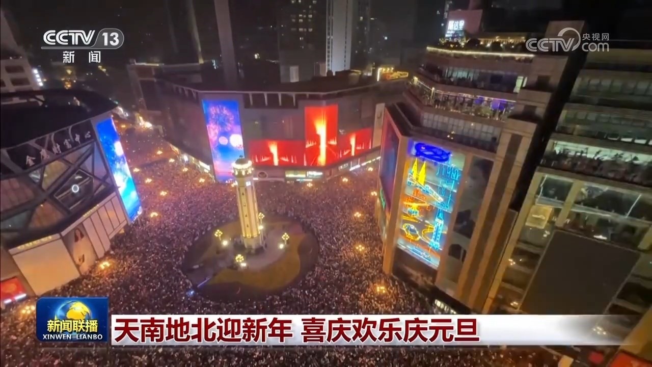 跨年夜,神州大地一派歡樂。在北京,新年倒計(jì)時(shí)主場活動(dòng)在首鋼園舉行,精彩紛呈的光影秀、燈光雕塑、文藝表演等,將園區(qū)變成了歡樂的海洋。在江西南昌,充滿科技與未來感的燈光秀,在城市樓宇間變幻出一幅幅美麗的畫卷。在海南??凇不帐徍?,數(shù)百架無人機(jī)擺出各種歡度節(jié)日的字樣和圖案,喜迎新年的到來。在重慶解放碑中央廣場,眾多市民和游客共同聆聽新年鐘聲,許下美好的新年愿望。