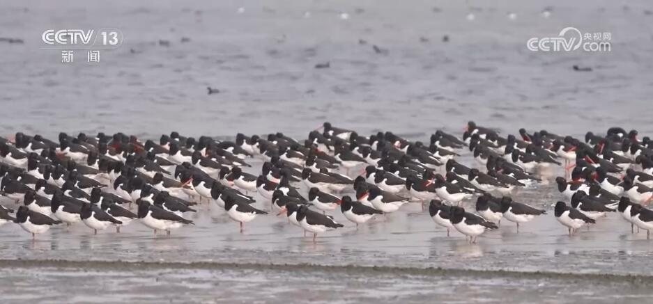 江蘇如東:大批蠣鷸聚集沿海灘涂 場(chǎng)面壯觀