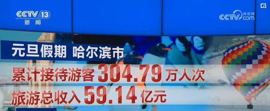 元旦期間,哈爾濱中央大街人山人海。東北虎林園、哈爾濱極地公園、松花江冰雪嘉年華、太陽島雪博會(huì),也都成為熱門的旅游目的地。