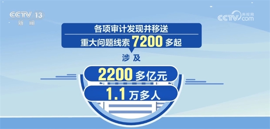 2023年1月至11月,全國共審計(jì)5.6萬多個(gè)單位,促進(jìn)增收節(jié)支和挽回?fù)p失3600多億元,健全完善規(guī)章制度1.6萬多項(xiàng)。各項(xiàng)審計(jì)發(fā)現(xiàn)并移送重大問題線索7200多起,涉及2200多億元、1.1萬多人。
