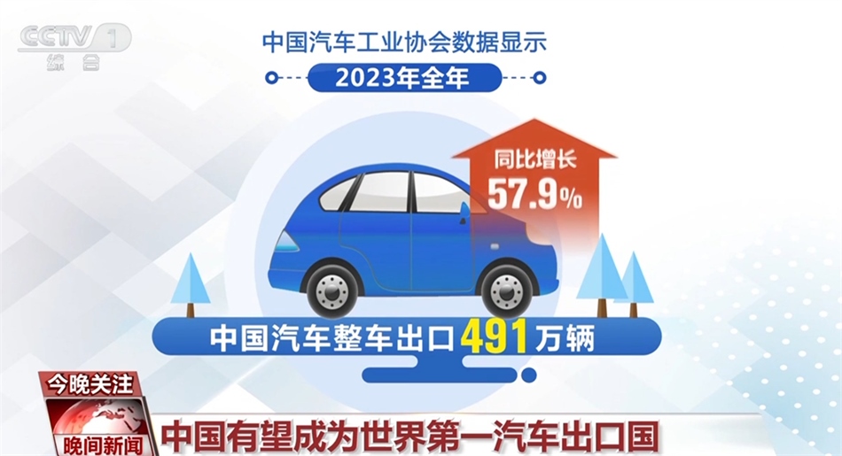 數(shù)據(jù)顯示,2023年全年,中國(guó)汽車整車出口491萬(wàn)輛,同比增長(zhǎng)57.9%。其中,新能源汽車出口120.3萬(wàn)輛,同比增長(zhǎng)77.6%。每4輛出口汽車中,有近1輛汽車來(lái)自新能源汽車。