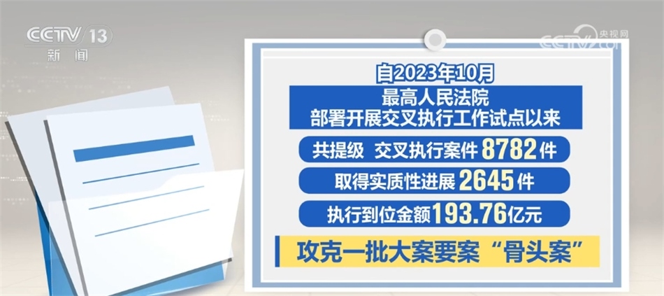 最高人民法院介紹,執(zhí)行難中常見被執(zhí)行人是當地重要企業(yè)、納稅大戶,甚至是重點國企或行政部門等情況。交叉執(zhí)行就是要讓接受指定的法院在不受牽絆、沒有包袱、完全依法自主的條件下力推案件執(zhí)行。據統(tǒng)計,開展交叉執(zhí)行工作試點以來,共提級、交叉執(zhí)行案件8782件,取得實質性進展2645件,執(zhí)行到位金額193.76億元,攻克了一批大案要案“骨頭案”。最高人民法院要求,上級法院發(fā)現(xiàn)原執(zhí)行法院存在消極執(zhí)行、拖延執(zhí)行等執(zhí)行不力情形,發(fā)現(xiàn)違紀違法問題線索的,應當嚴肅依紀依法查處、追究責任。