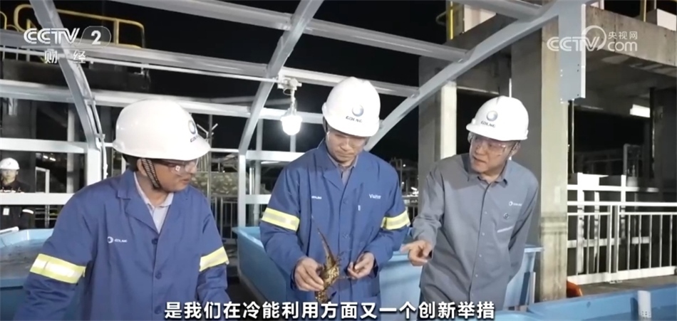 中國海油廣東大鵬液化天然氣冷能利用養(yǎng)殖示范項(xiàng)目經(jīng)理 牛軍鋒:調(diào)溫池的作用主要是為了把不同的品種設(shè)置不同的溫區(qū),每一個(gè)品種對(duì)(水)溫度的適應(yīng)性是不一樣的,我們把這個(gè)池子進(jìn)行分區(qū)控制,用來飼養(yǎng)不同溫區(qū)的水產(chǎn)品。