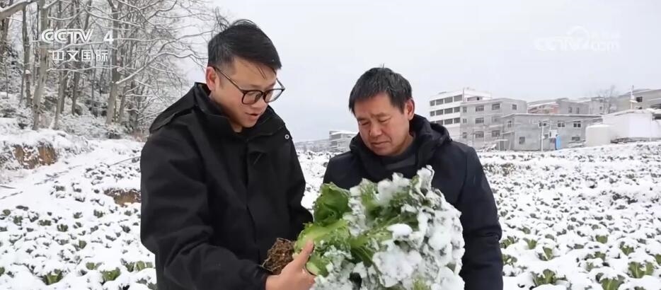 在貴州畢節(jié)螺絲村蔬菜基地,田間地頭白茫茫一片。為應(yīng)對低溫凝凍天氣,當?shù)剞r(nóng)技人員現(xiàn)場查看蔬菜長勢,為農(nóng)戶講解蔬菜防凍知識,指導做好防寒抗凍措施。