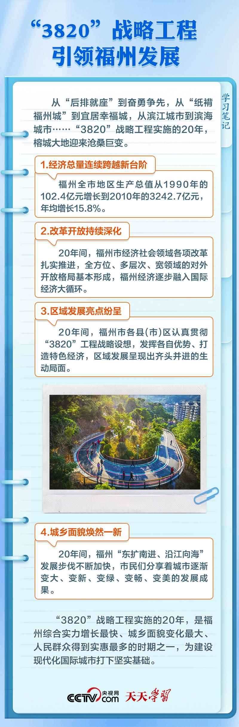 上世紀90年代,習近平在福州工作期間,親自主持編制了《福州市20年經(jīng)濟社會發(fā)展戰(zhàn)略設想》(簡稱“3820”戰(zhàn)略工程),系統(tǒng)謀劃了福州3年、8年、20年經(jīng)濟社會發(fā)展的目標、步驟、布局、重點等,為福州擘畫了美好藍圖,確立了總綱領、總方略。