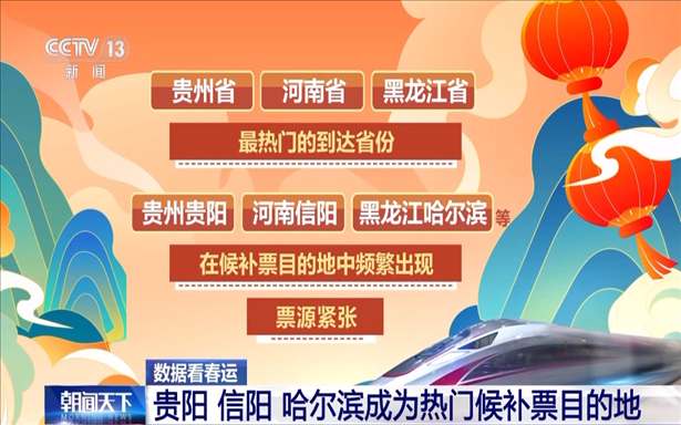 貴州省、河南省、黑龍江省是最熱門的到達省份。貴州貴陽、河南信陽、黑龍江哈爾濱等在候補票目的地中頻繁出現(xiàn),票源緊張。