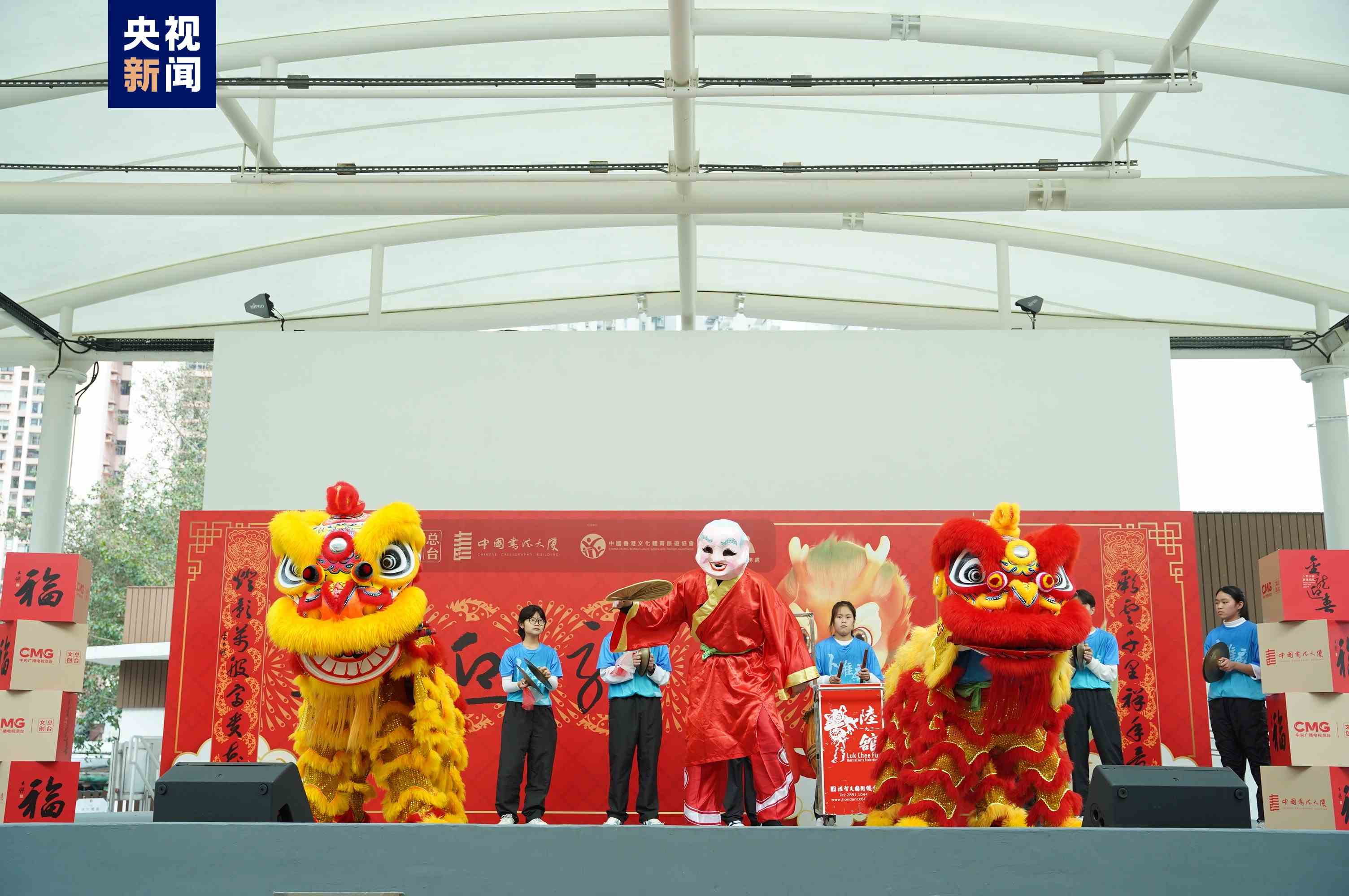 精神振奮的醒獅表演、耳熟能詳?shù)某绷鹘鹎?、喜慶熱鬧的氣氛吸引了眾多香港市民駐足觀看。