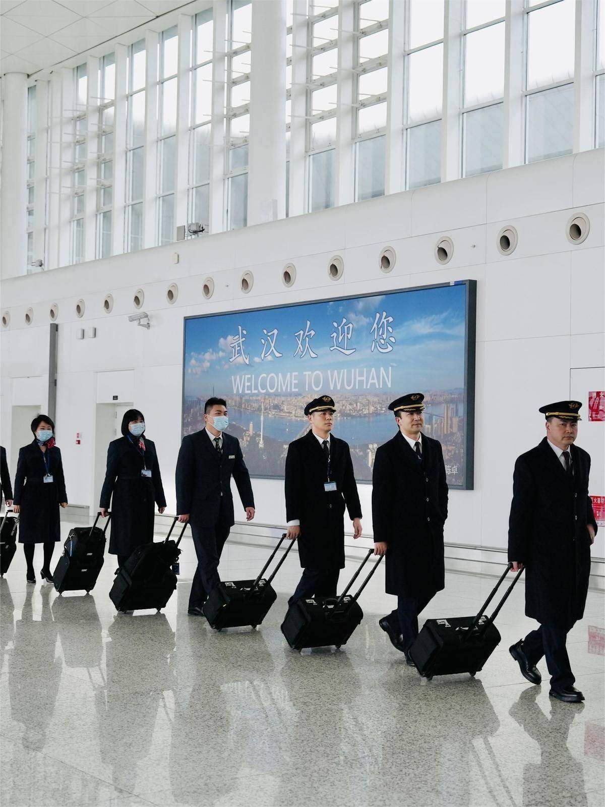 東航機組從武漢天河機場出乘。(通訊員 李展鵬 攝)