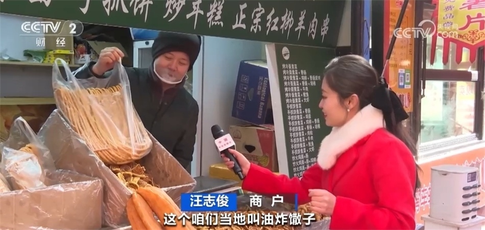 總臺(tái)記者 馬雅慧:今天一來到這里我就聞到了濃濃的香料味兒,大家看我身旁的這些都是青海特色的油炸年饃,當(dāng)?shù)厝艘步杏驼ü?。老板,我看這里款式各式各樣的都有,您能給我們介紹一下嗎?