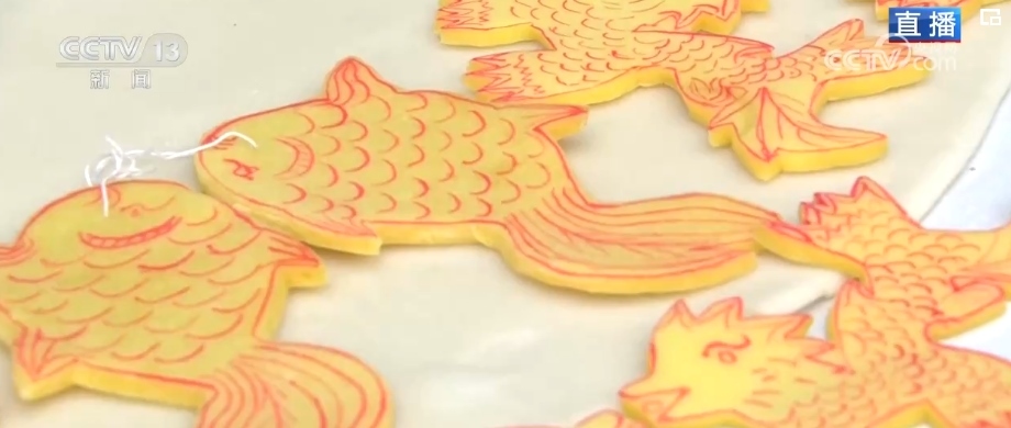 傳統(tǒng)“八大碗”,葷素搭配、香味撲鼻。這個(gè)菜叫做麻脆,是村民們過年的時(shí)候一定要吃上的美味。麻脆由糯米制作而成,不僅有不同的顏色,還可以制作成花鳥魚蟲、蔬菜水果等多種圖案。龍年到來,村里還特別用蔬果做了一條中國龍。