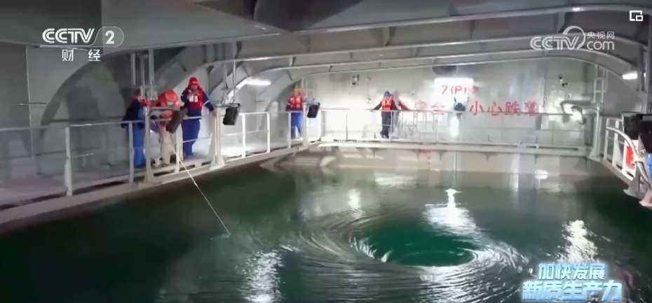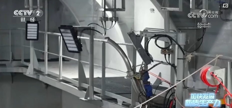 依靠首創(chuàng)的“船載艙養(yǎng)”模式,國(guó)信1號(hào)養(yǎng)殖工船,每年能實(shí)現(xiàn)3700噸高品質(zhì)魚類和650噸優(yōu)質(zhì)蛋白的供給。到了收獲的時(shí)候,艙內(nèi)的大黃魚將通過吸魚泵和傳送帶直接轉(zhuǎn)運(yùn)至休眠池,在那里進(jìn)行快速降溫休眠鎖鮮。