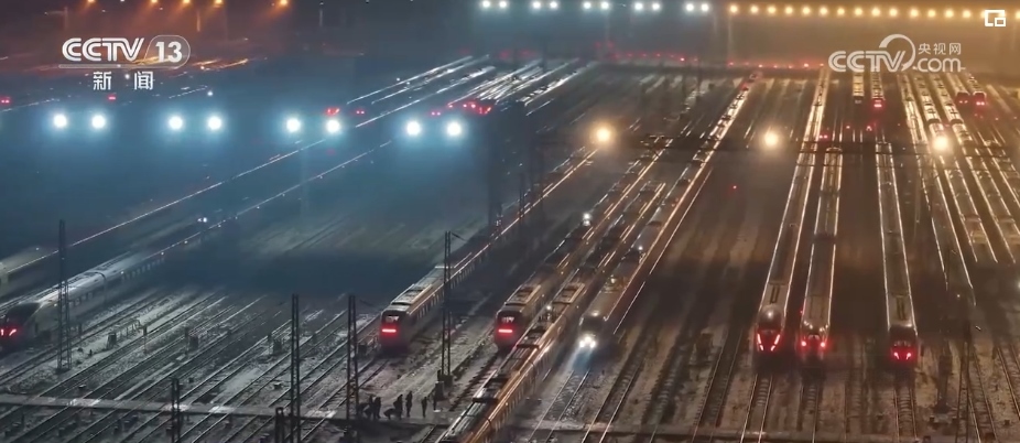 趁著茫茫夜色,動車組司機張洋從動車所出勤,執(zhí)行當(dāng)天高鐵第一列“熱滑除冰車”的執(zhí)勤任務(wù)。