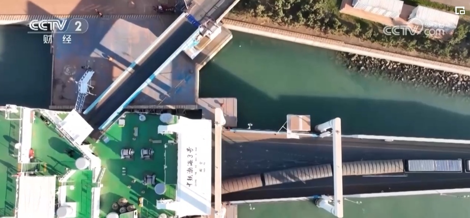 中鐵渤海3號(hào)渡船全長182.6米、寬24.8米,滿載排水量可達(dá)16229噸,單航次可載運(yùn)一列50節(jié)貨物列車和50輛載重汽車、25輛小汽車以及716名旅客。