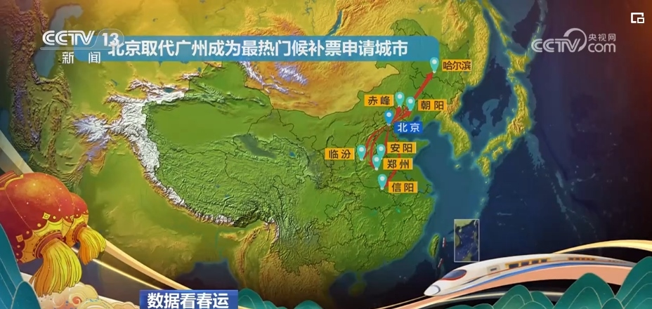 申請(qǐng)候補(bǔ)票的熱門路線2月7日出現(xiàn)新變化,北京取代廣州成為候補(bǔ)票申請(qǐng)最熱門的出發(fā)城市。從北京到朝陽、赤峰、哈爾濱、鄭州、臨汾、信陽、安陽這7個(gè)城市的候補(bǔ)票最為緊張。而從上海出發(fā)到鄭州、武漢、周口、商丘等中部城市的候補(bǔ)票也比較緊張。