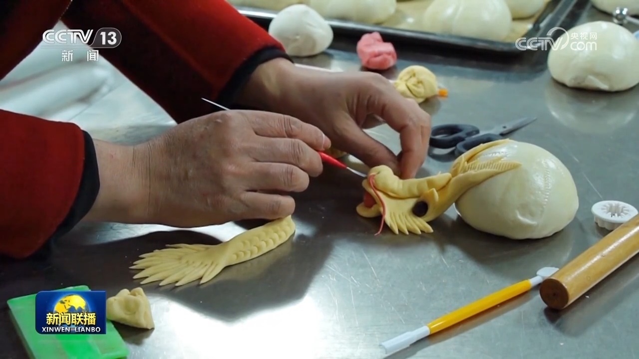 這幾天,黑龍江虎林、四川北川等地,人們蒸花饃,炸油馃,備年貨,好是熱鬧。在陜西韓城,一塊普通的面團(tuán),在村民的巧手里制作出一條條惟妙惟肖的“龍”造型花饃;在山西長(zhǎng)治,鄉(xiāng)親們聚在一起,揉面、捏花,熱氣騰騰的棗饃為春節(jié)增加了甜蜜和喜慶。在遼寧沈陽(yáng),家家戶(hù)戶(hù)發(fā)面烀豆餡,包出的圓滾滾的黏豆包,寓意著新年蒸蒸日上。在甘肅張掖,大家忙著炸麻花、炸油馃,制作各式各樣的特色春節(jié)美食。