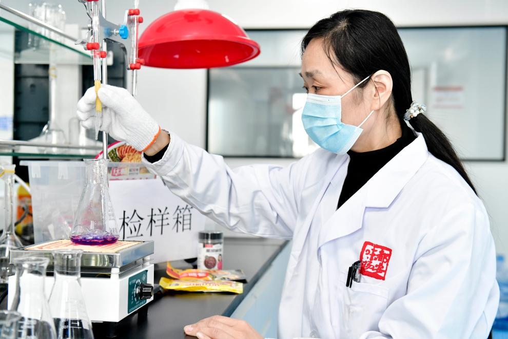 工作人員在樂陵市調味品產業(yè)共享實驗室對送樣調味品進行檢測。新華社記者 郭緒雷 攝