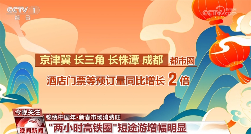 而在說走就走的短途游中,“兩小時高鐵圈”受到青睞。截至大年初一,春節(jié)假期“兩小時高鐵圈”短途游的搜索量同比增長7倍。從實(shí)際預(yù)訂情況看,京津冀、長三角、長株潭、成都都市圈等區(qū)域的酒店、門票等相關(guān)旅游產(chǎn)品預(yù)訂量同比增長2倍。
