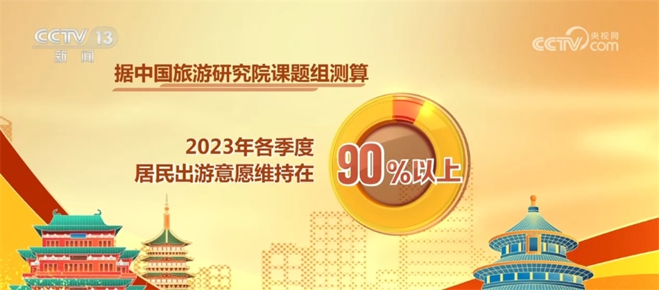 據(jù)中國旅游研究院課題組測算,2023年各季度居民出游意愿維持在90%以上。2023年全國游客滿意度綜合指數(shù)80.04,處于滿意水平,與2019年滿意度水平基本持平。