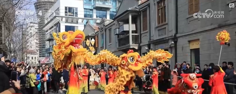 在上海的大街小巷,舞龍舞獅、光影秀等各類新春活動陸續(xù)登場,讓市民游客感受龍年的歡騰圖景。一大早,隨著鑼鼓聲激昂開場,一條金龍和兩頭活潑的醒獅在上海市茂名北路威武亮相。龍獅團(tuán)成員們舞動一條長約30米的巨龍在街市上穿梭游走,吸引了不少市民游客駐足觀看。