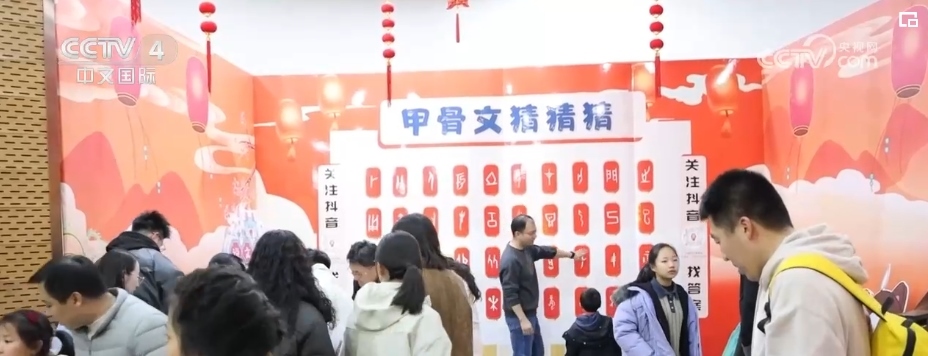 博物館內(nèi)的漢字展、漢服秀、甲骨文韻律操、文創(chuàng)集市等豐富多彩的節(jié)目,也給游客帶來了不一樣的新春體驗和感受。識讀甲骨文,能讓大家對漢字演變過程有更加直觀的認(rèn)識和了解,在“甲骨文猜猜猜”游戲中,游客們認(rèn)真觀察、思考展板上一個個甲骨文所對應(yīng)的漢字,感受著古人的智慧和漢字的靈性與博大。