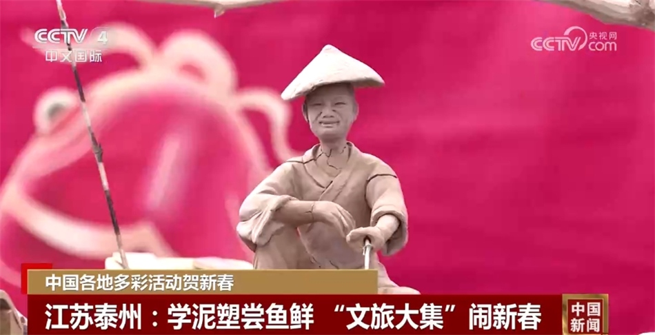 春節(jié)期間,江蘇泰州興化市舉辦了新春“文旅大集”活動。在現場,除傳統(tǒng)花船、舞龍等民俗表演外,當地泥塑非遺傳承人還帶來了蟠龍、漁船、漁具等雕塑作品,游客在老師們的指導下也學起了雕刻泥塑。此外,大集上還能品嘗到新鮮水產品加工成的魚圓、魚頭湯,讓大家“年年有余”,圖個好彩頭。