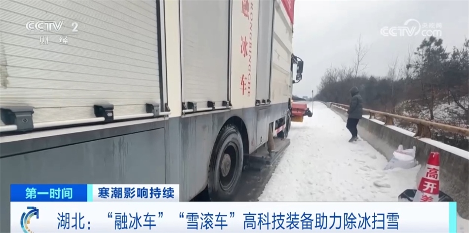 這是湖北隨縣引進(jìn)的“雪滾車”,作業(yè)時,前端滾軋利用高密度、高彈性的鋼絲滾刷高速旋轉(zhuǎn),先把表層積雪、浮冰甩出車道,再用滾軋內(nèi)圈的沖擊輥輪把冰打碎,最后由滾刷把殘雪、殘冰掃向路邊。