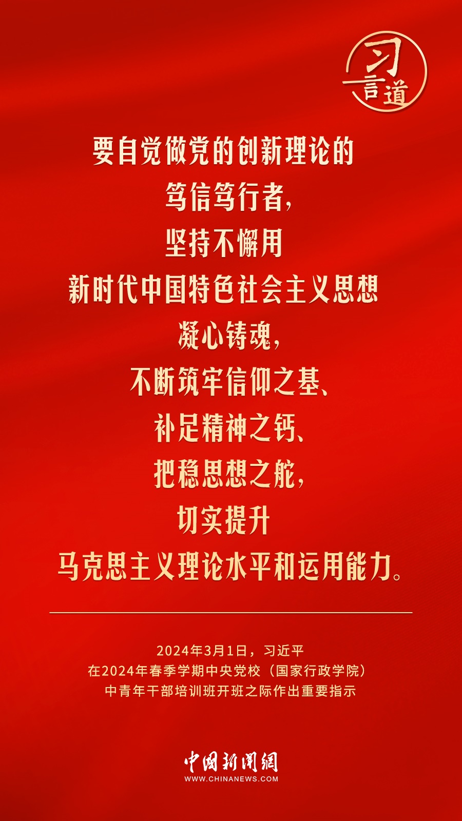 2024年春季學(xué)期中央黨校(國家行政學(xué)院)中青年干部培訓(xùn)班3月1日上午在中央黨校開班。中共中央總書記、國家主席、中央軍委主席習(xí)近平作出重要指示,他強調(diào)——