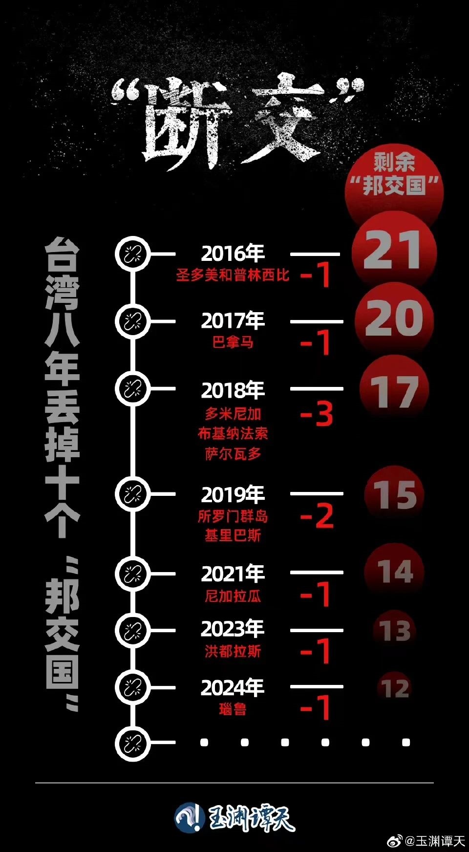 最近八年,臺灣當(dāng)局迎來了第四輪“斷交潮”,“邦交國”平均每年都要丟掉一個,并且這個速度絲毫沒有下降的趨勢。