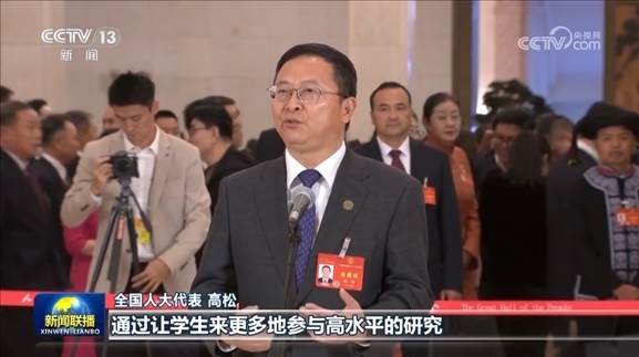 談及高等教育如何培養(yǎng)學生的創(chuàng)造力和促進學生的全面發(fā)展,作為中山大學校長的全國人大代表高松表示,面對未來,我們需要培養(yǎng)學生的學習力、思想力和行動力,從而形成創(chuàng)造力。