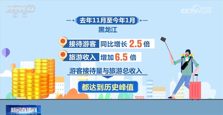 新的消費(fèi)業(yè)態(tài)也帶來(lái)了可觀的人氣,數(shù)據(jù)顯示,去年11月至今年1月,黑龍江接待游客同比增長(zhǎng)2.5倍,旅游收入增加6.5倍,游客接待量與旅游總收入都達(dá)到歷史峰值。