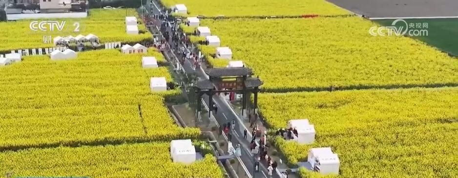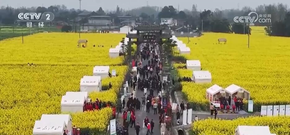 除了“花田火鍋”,在以油菜花田為背景的鄉(xiāng)村道路上,各類裝滿當(dāng)?shù)靥厣r(nóng)產(chǎn)品的攤位依次擺開。游客們迎著花香趕大集,帶走春日特有的伴手禮。