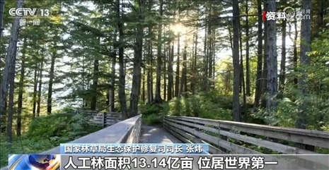 國家林草局生態(tài)保護(hù)修復(fù)司司長張煒表示,黨的十八大以來,全國上下共同努力,累計(jì)完成國土綠化任務(wù)16.8億畝,全國森林面積、森林蓄積量連續(xù)多年保持“雙增長”,人工林面積13.14億畝,位居世界第一。