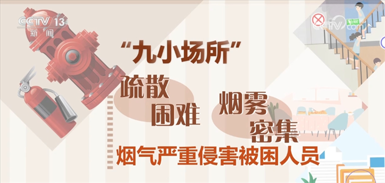 “九小場所”是指建筑面積在300平方米以下的小商場、額定就餐人數(shù)100人以下的小飯店、床位數(shù)50張以下的小旅館,以及小型的公共娛樂、休閑健身、醫(yī)療、教學(xué)、生產(chǎn)加工、易燃易爆危險(xiǎn)品銷售儲存等場所?!熬判鏊币坏┏霈F(xiàn)火災(zāi),容易形成大面積燃燒。通常,“九小場所”疏散困難、煙霧密集,煙氣嚴(yán)重侵害被困人員。同時(shí),水源缺乏、滅火救援難度大,極易造成人員傷亡。